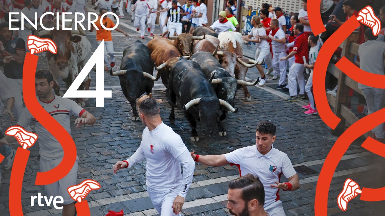 Четвёртое видео с Санферминес: 4-й из 8 забегов быков в Памплоне (Наварра, Испания)