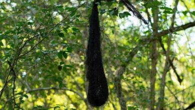 На деревьях в Испании появились чёрные мешки