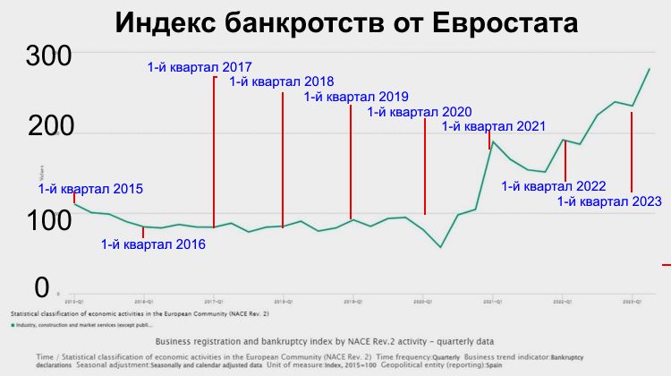 С 2020 года количество банкротств предприятий в Испании увеличилось в три раза и стало рекордным в ЕС
