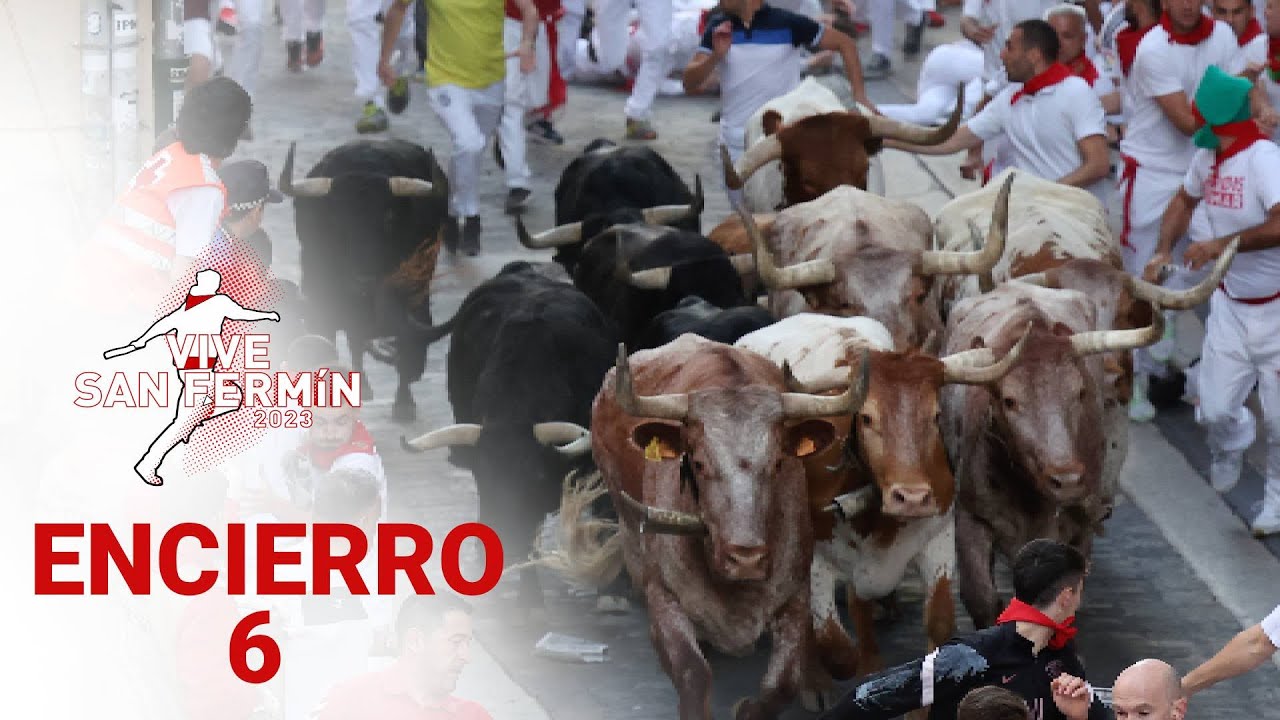 Шестое видео с Санферминес. 6-й из 8 забегов быков в Памплоне (Наварра, Испания)