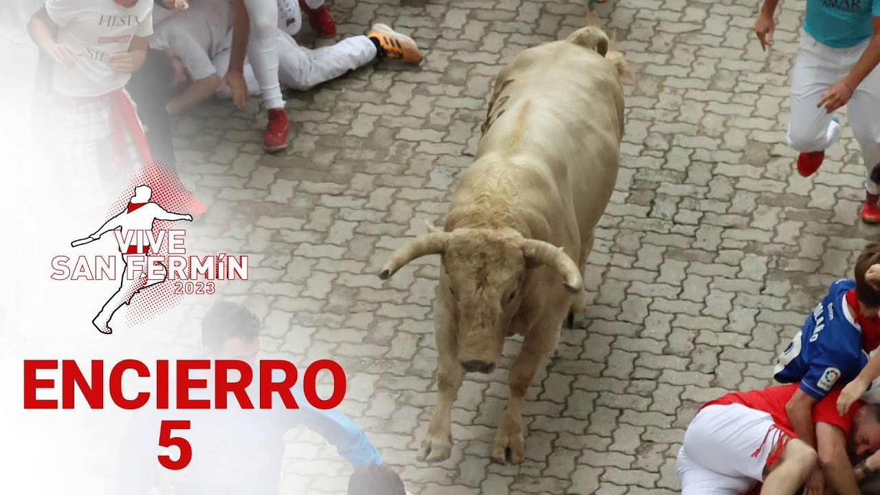 Пятое видео с Санферминес. 5-й из 8 забегов быков в Памплоне (Наварра, Испания)